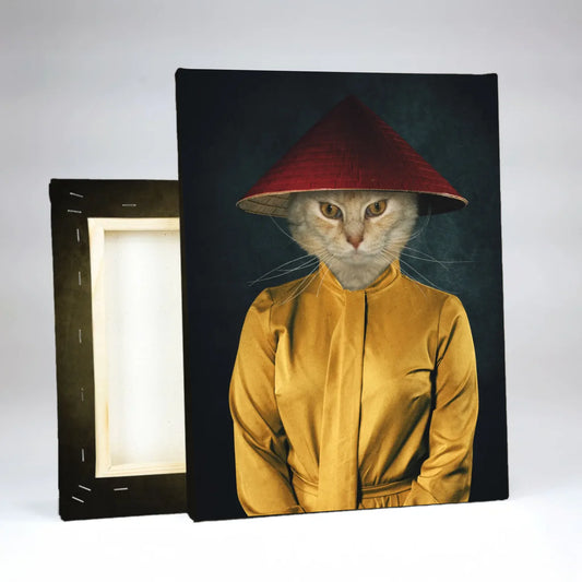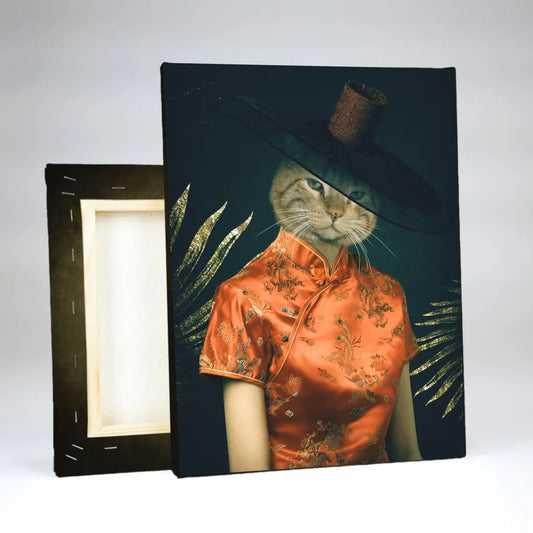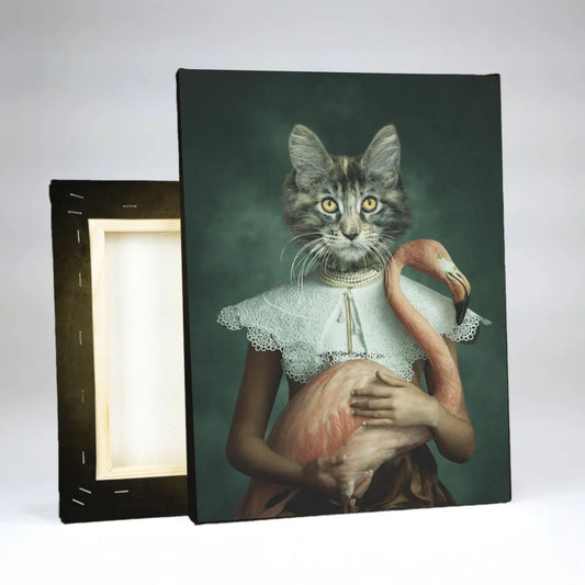 - A megtervezett kisállat portrét prémium pamut vászonra nyomtatjuk latex technológiával.