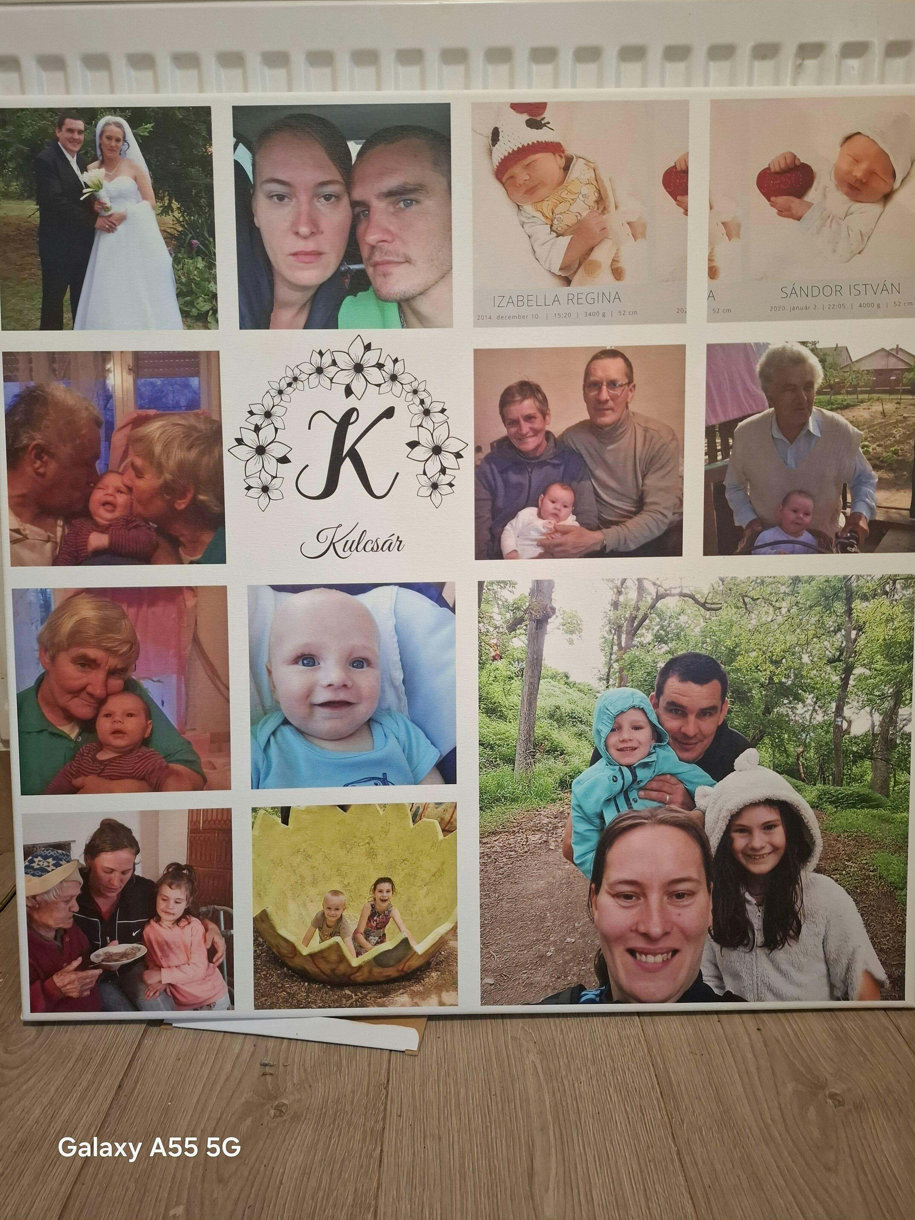 Ezen a vászonképen a családotok neve, valamint a monogram jelenik meg, a körülötte lévő 12 db képet pedig a saját fotóidra cserélheted. Természetesen a családnév bármilyen más szövegre is lecserélhető.