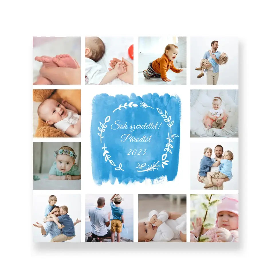 Ezt a vászonkép fotókollázst főként apák napjára ajánljuk, 12 fotóból áll, amelyeket saját magad válogathatsz össze és tervezhetsz meg itt a weboldalunkon.