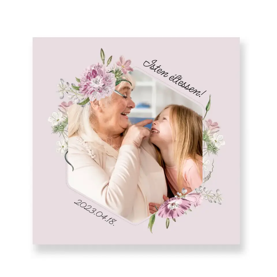 Ezt a típusú vászonképet főként nőknek ajánljuk a virágos motívumok miatt. Feltöltheted saját fotódat, amelyet a virágok ölelnek körül, különleges hatást adva ezzel a fotódnak.